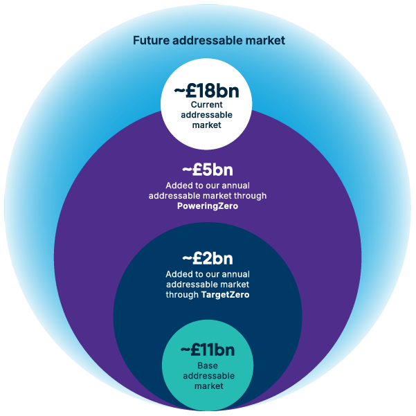 Solutions we refer to as TargetZero add ~£2 billion to our annual addressable market. This opportunity is sized on 2024’s installed base of fuel-fired boilers in our target sectors and regions and an assumption of adoption over multiple years constrained by factors such as customer appetite to invest, availability of green electricity and grid transmission capacity.